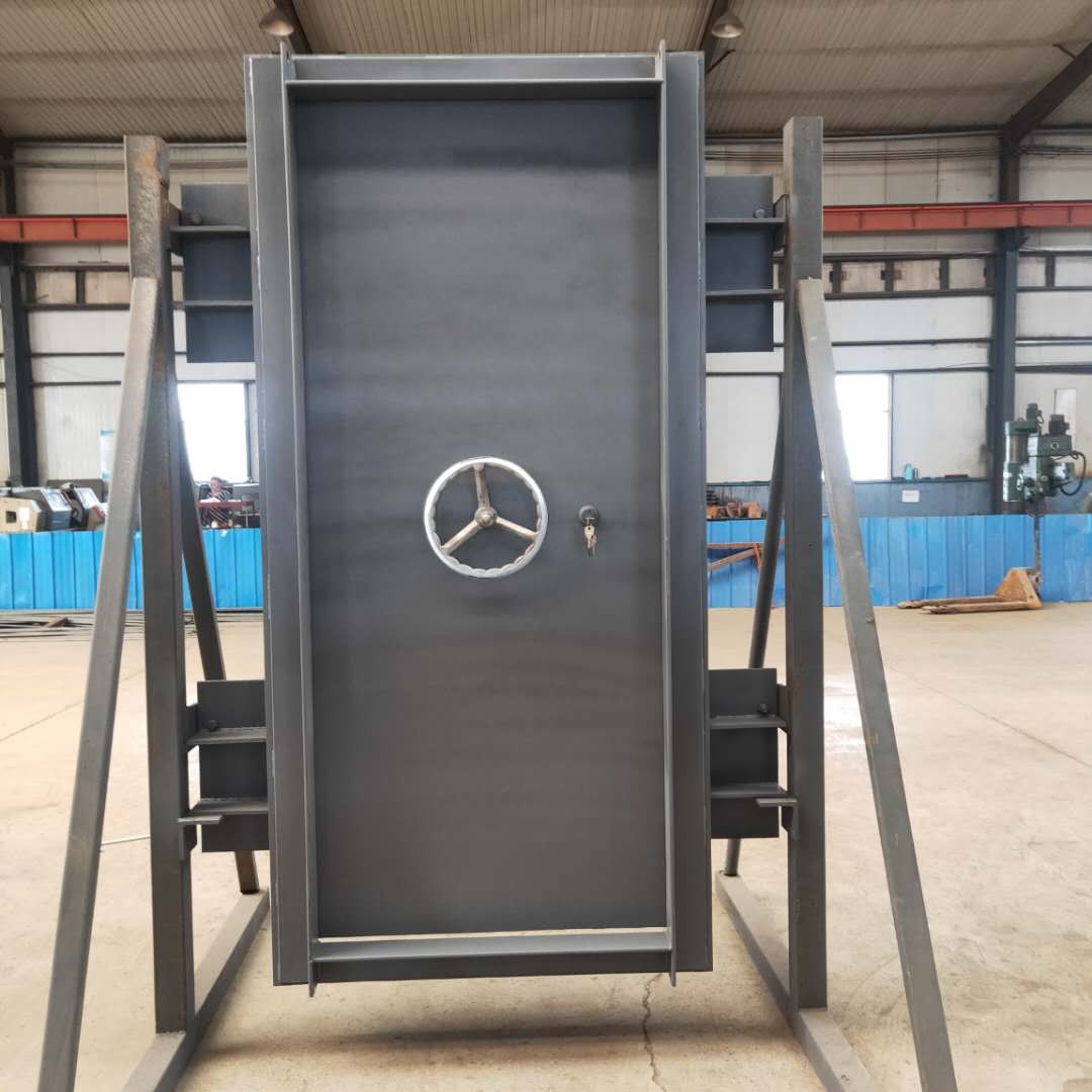 (1)門框一般采用鋼板厚度在5-6mm以上,門扇結(jié)構(gòu)一般為雙面鋼板,中間加型鋼做肋。門扇內(nèi)部需填充強(qiáng)度等級為30的素混凝土。四周還需加上密封膠條,